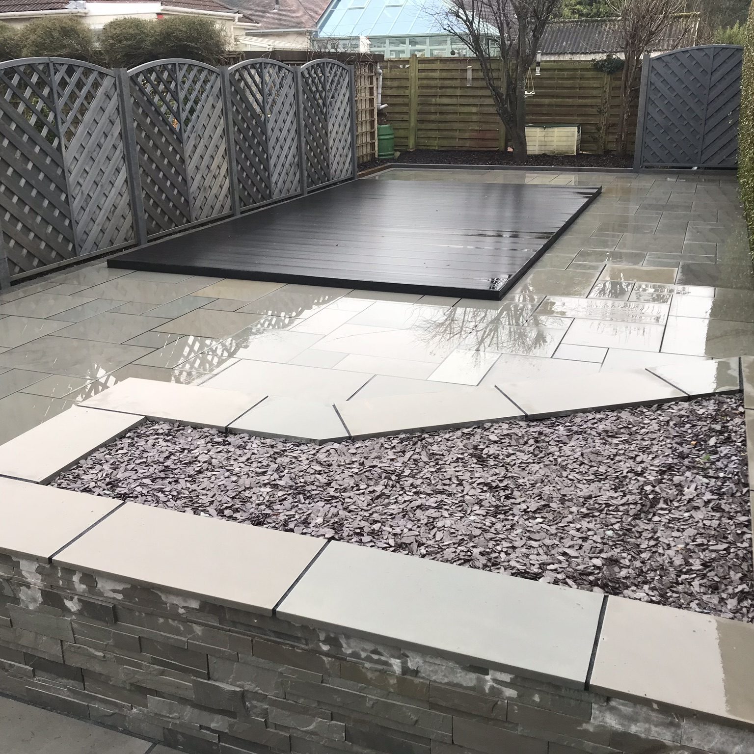 We guarantee the quality of our workmanship and build, if there is any need for us to return and repair any part of the work carried out, our valued customers need only make a call to us. Any perishable item such as jointing compound and products that erode due to weather and foot traffic, we do not guarantee due to the perishable nature of the product and may be subject to charge to replace.